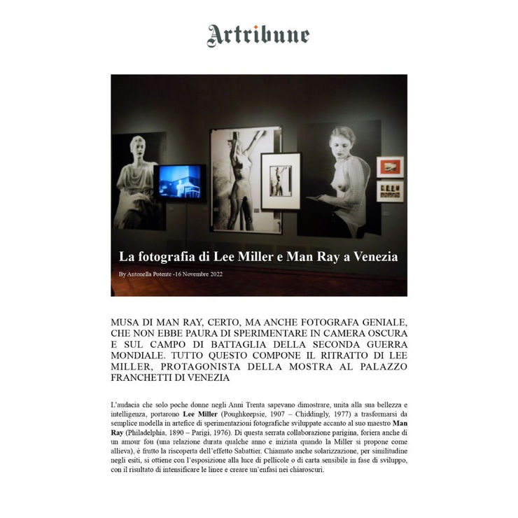 PALAZZO FRANCHETTI DEDICATES AN EXHIBITION TO LEE MILLER AND HIS CONNECTION WITH MAN RAY